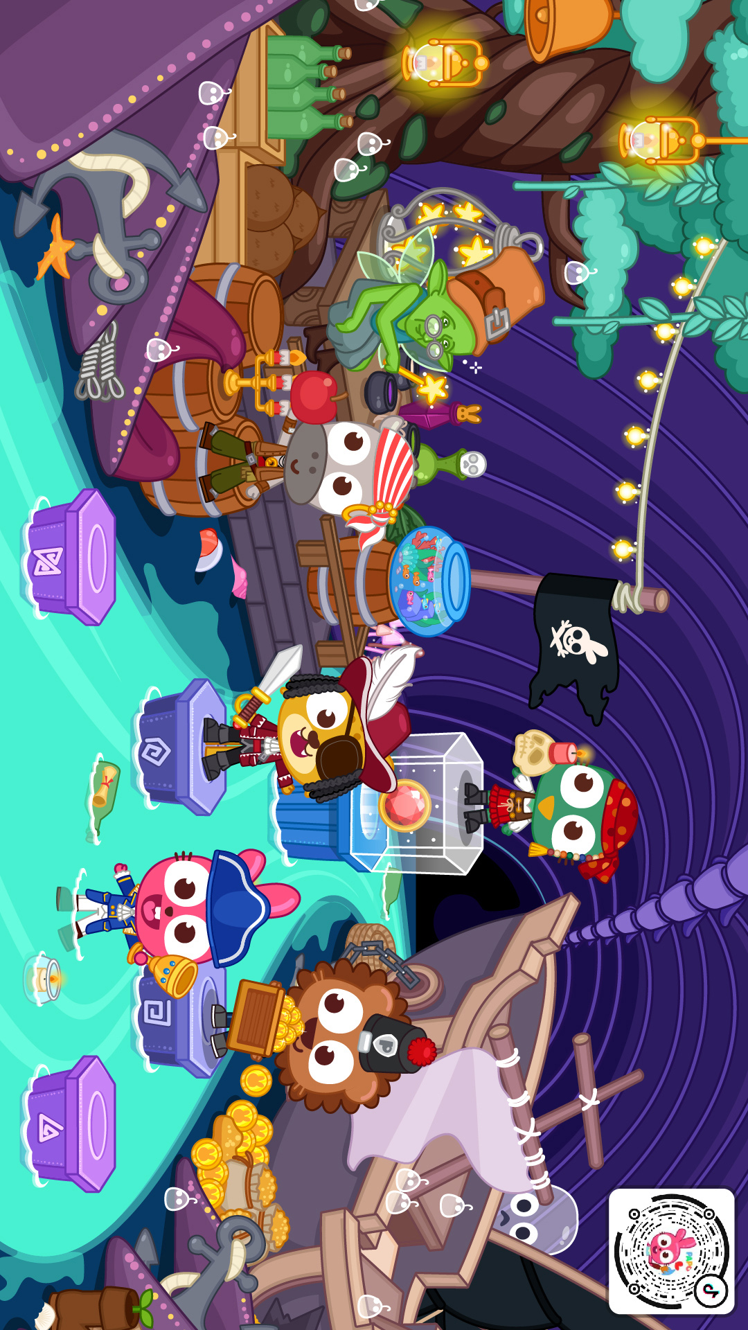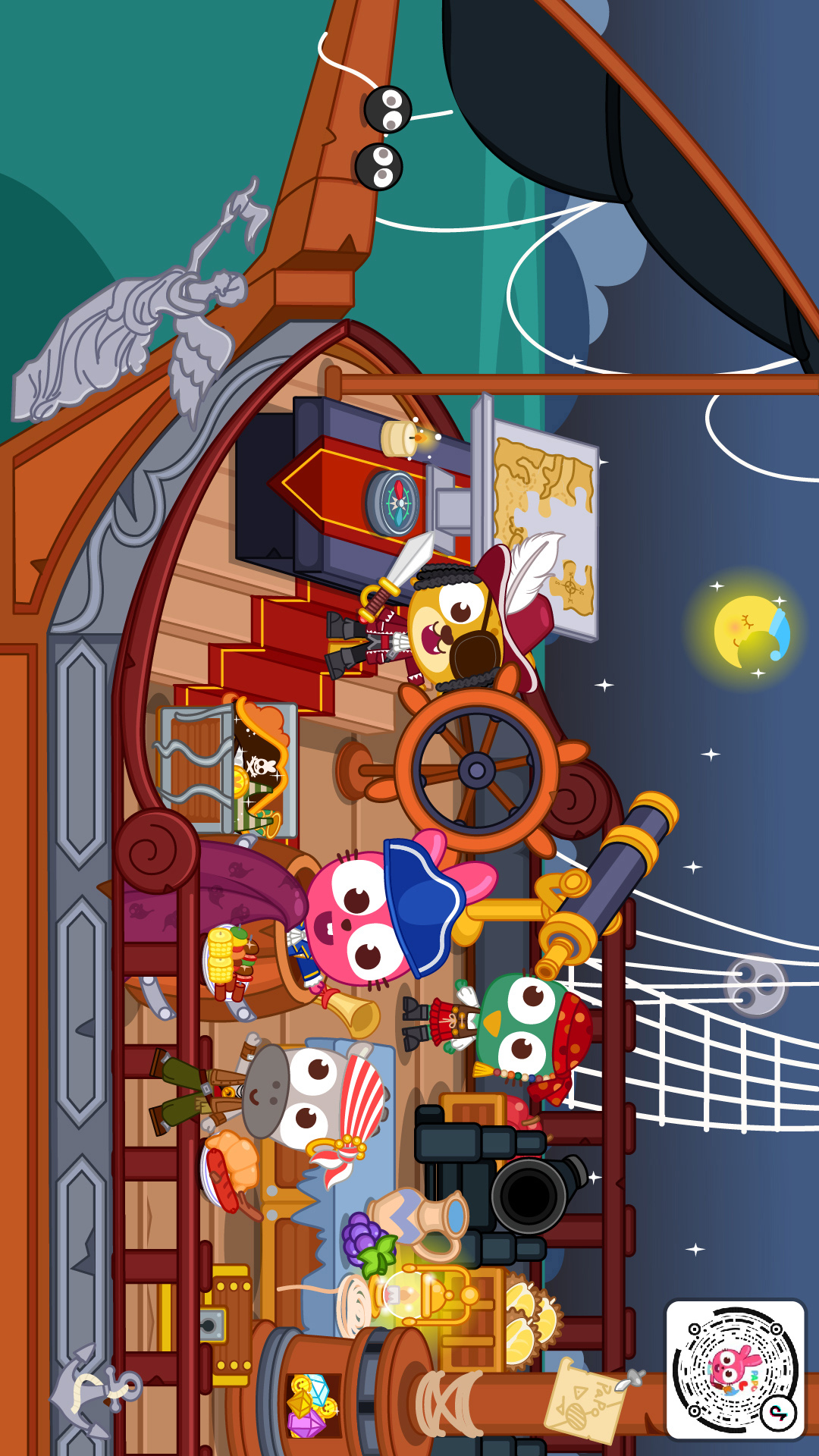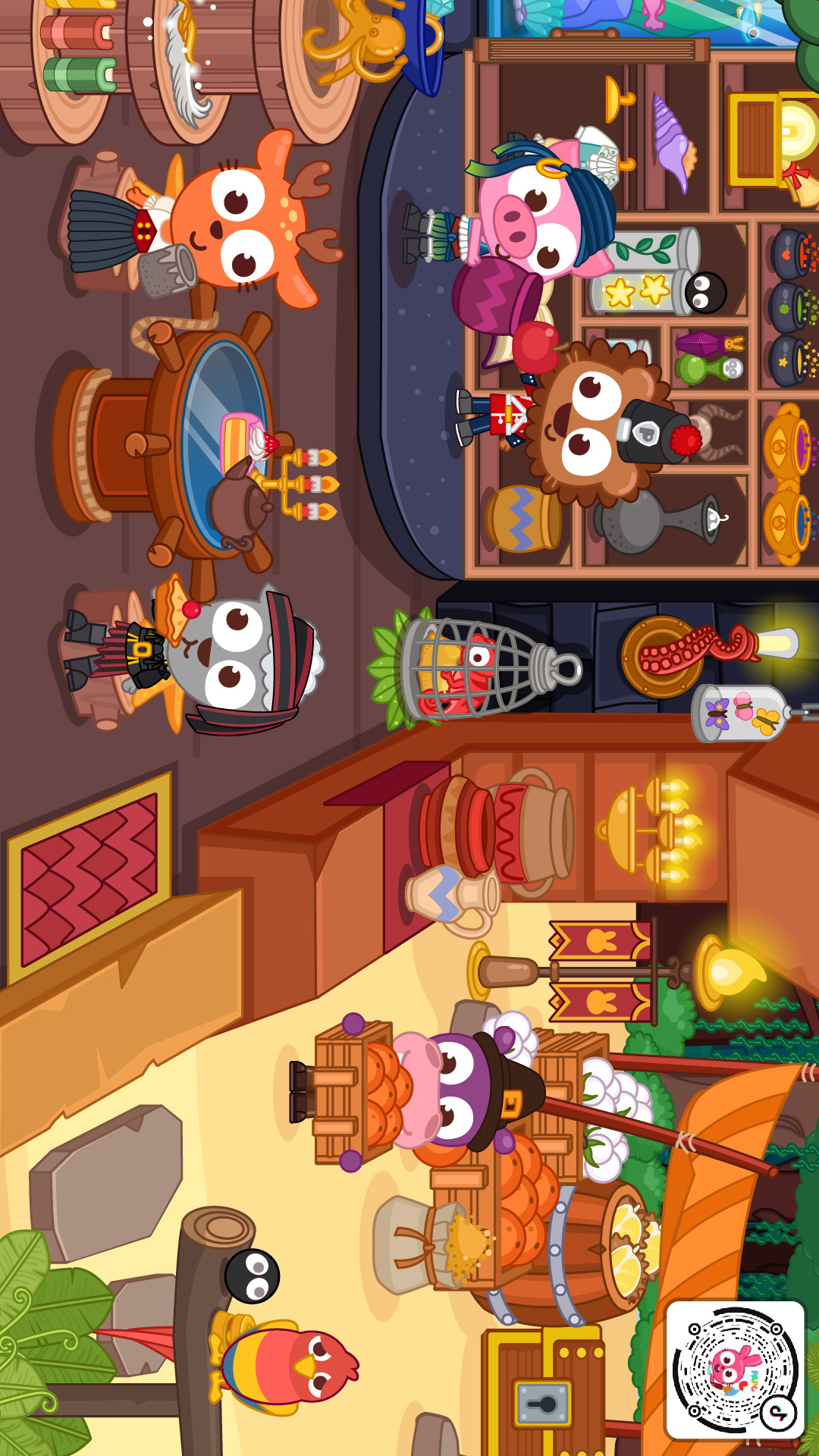 3、角色养成系统:通过完成冒险任务积累“泡泡币”,可兑换船帆、船锚、宠物鹦鹉等个性化装饰,还能解锁新角色皮肤,如女海盗“泡泡露娜”、机械师“齿轮船长”,培养孩子的资源管理与审美能力。