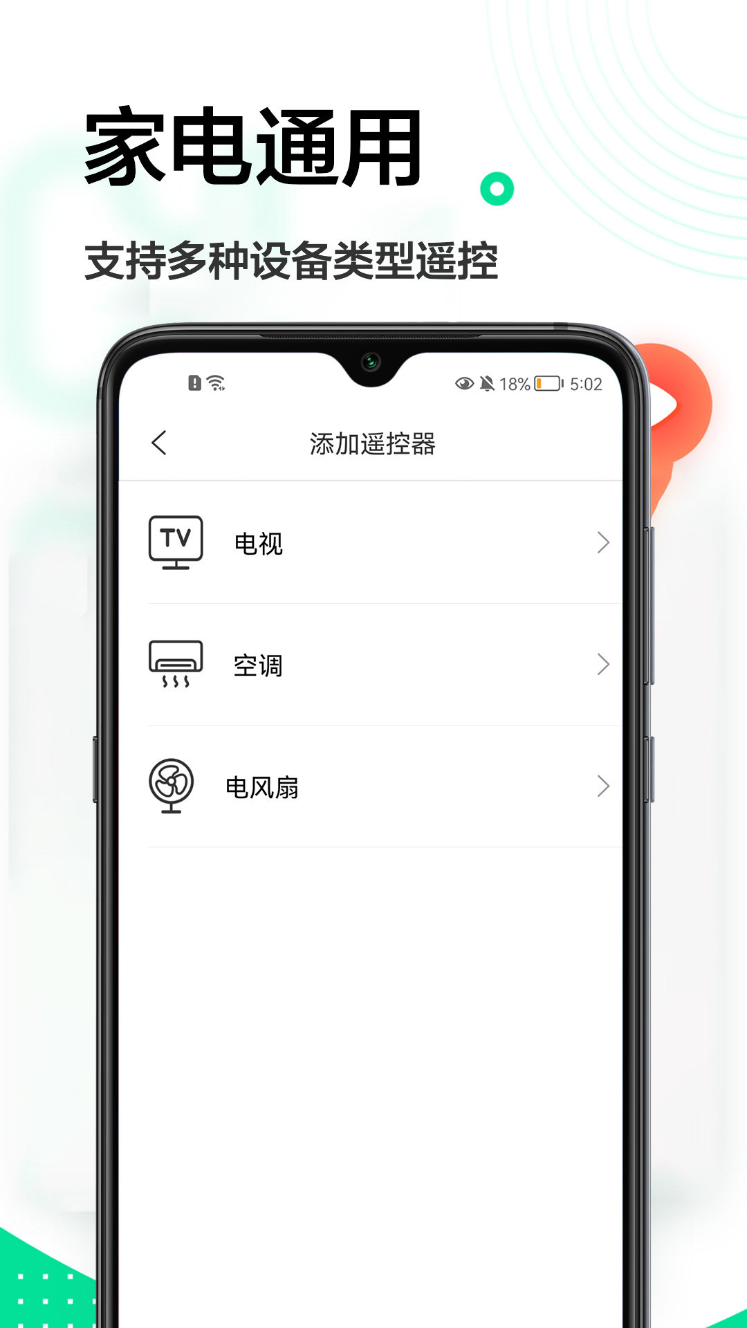 1、**全品类家电覆盖**:电视智能遥控王内置超过2000种家电红外码库,涵盖电视、空调、机顶盒、投影仪、风扇、热水器等12类设备。例如,用户可通过同一界面切换“长虹电视”的频道与“格力空调”的制冷模式,无需频繁切换应用。