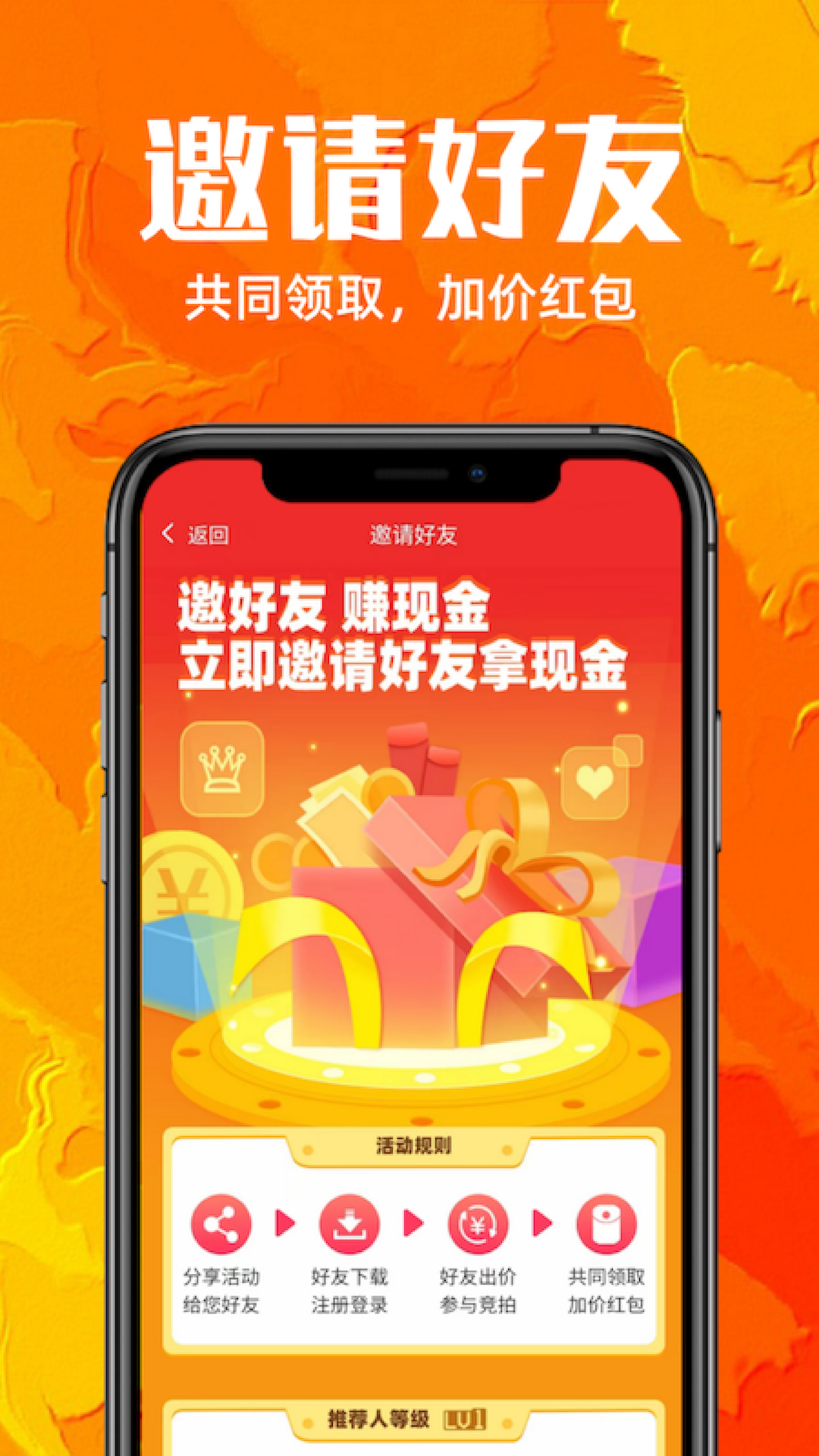 3、**社交裂变机制**:用户通过邀请好友注册可获得“加价红包”,每成功邀请1人可兑换5元无门槛券。同时,平台设置“竞拍排行榜”,月度消费TOP10用户可获赠限量版商品。例如,2025年9月,南京用户通过邀请23人获得iPhone 16 Pro Max的竞拍资格。