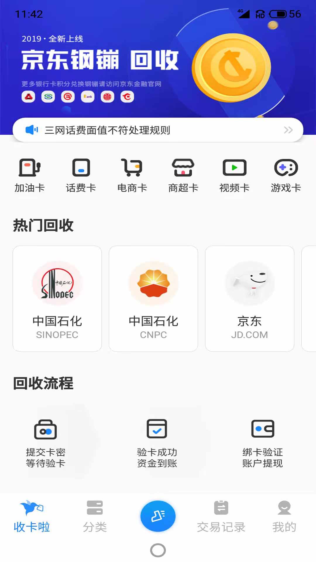 1、全品类卡券回收:平台支持移动、联通、电信三网话费卡(10-500元面值),以及腾讯、网易等游戏点卡、京东e卡、苏宁卡等电商礼品卡的回收。用户只需输入卡号卡密,系统自动核验卡券有效性,5分钟内完成审验并到账。