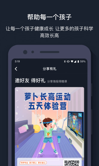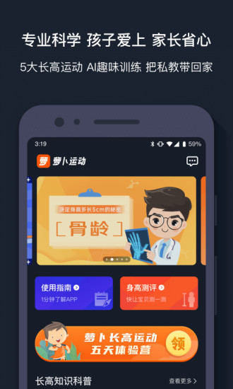 萝卜运动是一款聚焦儿童运动健康管理的智能应用,以科学运动为核心,通过身高体重追踪、个性化运动方案制定、AI体感训练等功能,为3-15岁儿童提供一站式健康管理服务。其核心目标是通过趣味化、专业化的运动干预,帮助儿童建立科学运动习惯,促进身高发育与体能提升。应用界面简洁易操作,支持离线使用,同时集成营养膳食匹配、健康报告生成等实用功能,成为家长辅助儿童健康管理的得力工具。