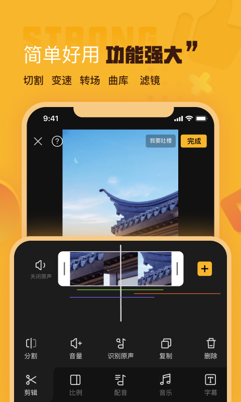 1、零门槛操作设计:采用拖拽式时间轴与可视化参数调节界面,用户无需学习专业术语即可完成剪辑。例如调整视频速度时,可通过曲线图直观控制加速/减速区间,生成鬼畜效果或慢动作特写。应用内置智能纠错系统,当检测到音频爆音或画面黑边时自动提示修复。