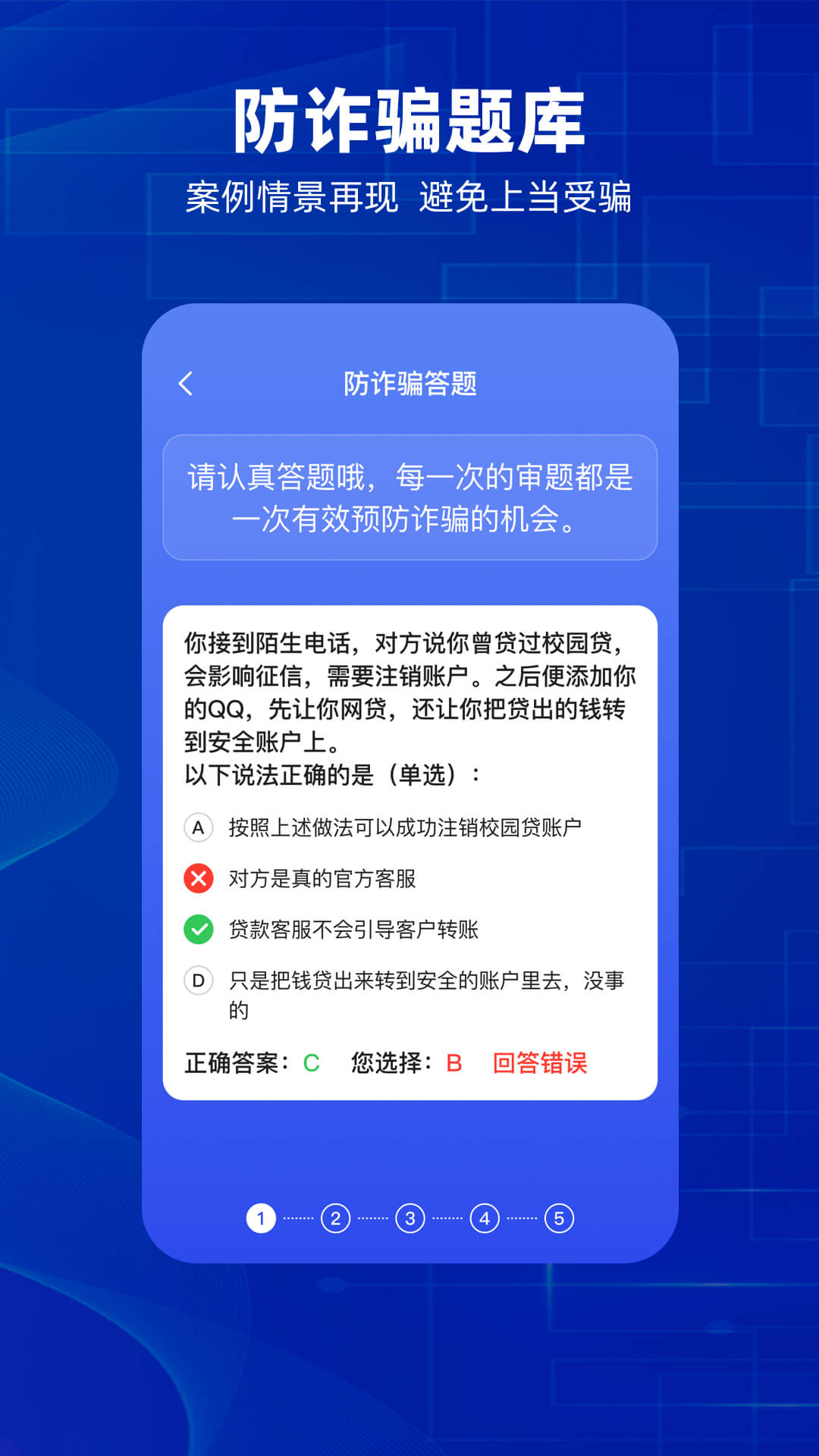 1、**游戏化学习模块**:将防诈知识设计为“闯关答题”“情景模拟”等互动游戏。例如,在“虚拟诈骗现场”游戏中,用户需根据对话选择正确应对方式(如挂断电话、联系官方客服),答错会触发“骗子心理分析”动画,帮助用户在娱乐中掌握防骗技巧。