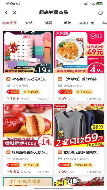 1、**全品类商品覆盖**:好优品APP的商品库涵盖女装、家居、美妆、母婴等八大核心品类,每日实时更新数千款新品。用户可通过分类导航或关键词搜索快速定位商品,例如输入“厨房用品”即可筛选出炊具、餐具、小家电等细分商品,满足从日常消耗品到品质升级的多样化需求。