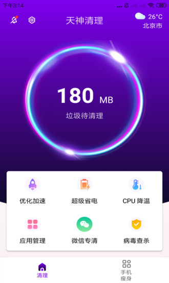 “天神清理”是一款专注于手机存储空间深度优化与性能提升的智能清理工具。它以“轻量、高效、安全”为核心设计理念,通过AI算法精准识别并清理冗余文件、缓存垃圾、残留安装包等无效数据,同时具备内存加速、电池优化、应用管理等多项实用功能。无论是日常清理还是深度维护,用户都能通过简洁的交互界面快速完成操作。此外,APP还内置了病毒查杀、隐私保护等安全模块,全方位守护手机健康。凭借其智能化的清理策略与低资源占用特性,“天神清理”已成为安卓用户优化设备的首选工具之一。