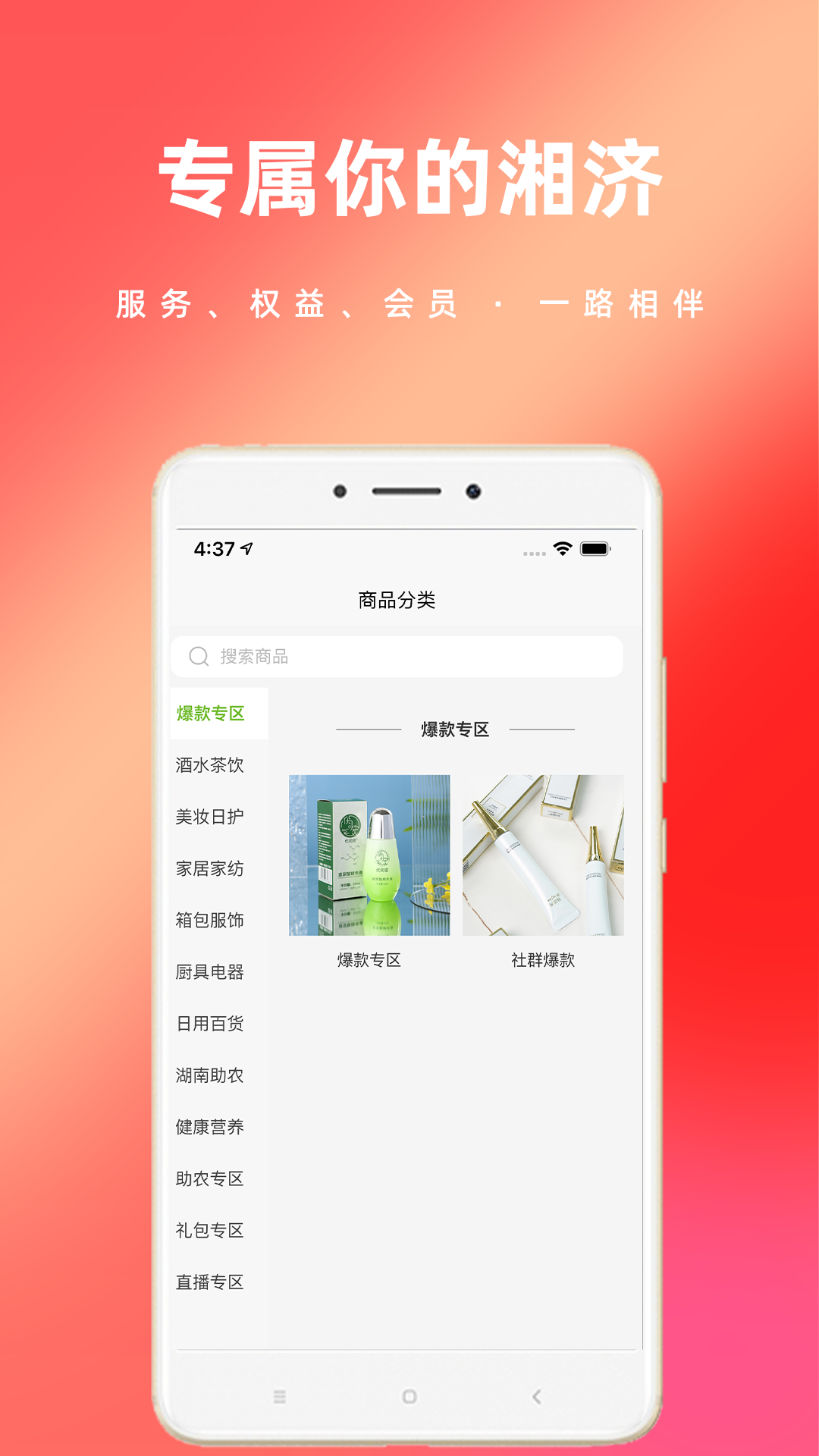 湘济优品是一款聚焦品质生活的移动购物平台,以“助农惠民”为核心,整合生态农产品直供与爆款商品限时特惠,打造集商品搜索、在线支付、物流跟踪、售后退换货于一体的全流程购物体验。平台涵盖生鲜果蔬、日用百货、数码家电等品类,每日更新超百款低价爆品,支持淘宝、天猫优惠券叠加返利,用户可通过签到、分享、抽奖等互动玩法获取额外优惠,实现“省心购、放心买”的消费需求。