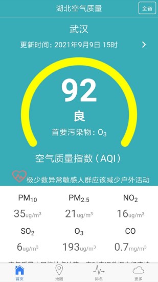 2、多维度数据对比:用户可同时查看武汉、宜昌、襄阳等城市的空气质量排名,或对比同一城市不同区域的污染差异,为跨城出行或购房选址提供参考依据。
