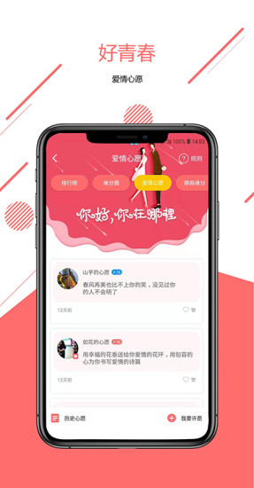 “好青春”是一款专为年轻人打造的社交互动与成长记录类APP,集青春故事分享、兴趣社群交流、目标管理追踪于一体。用户可通过图文、短视频形式记录校园生活、职场感悟或兴趣爱好,平台智能推荐同频好友,构建温暖的社交圈。同时提供“青春树洞”匿名倾诉功能、“时光胶囊”未来信件服务及“技能交换”学习社区,助力用户发现自我、结识伙伴、共同成长。无论是记录日常碎片、参与话题讨论,还是寻找学习搭子,“好青春”都以简洁清新的界面和贴心的功能设计,成为Z世代表达自我、记录青春的数字伙伴。