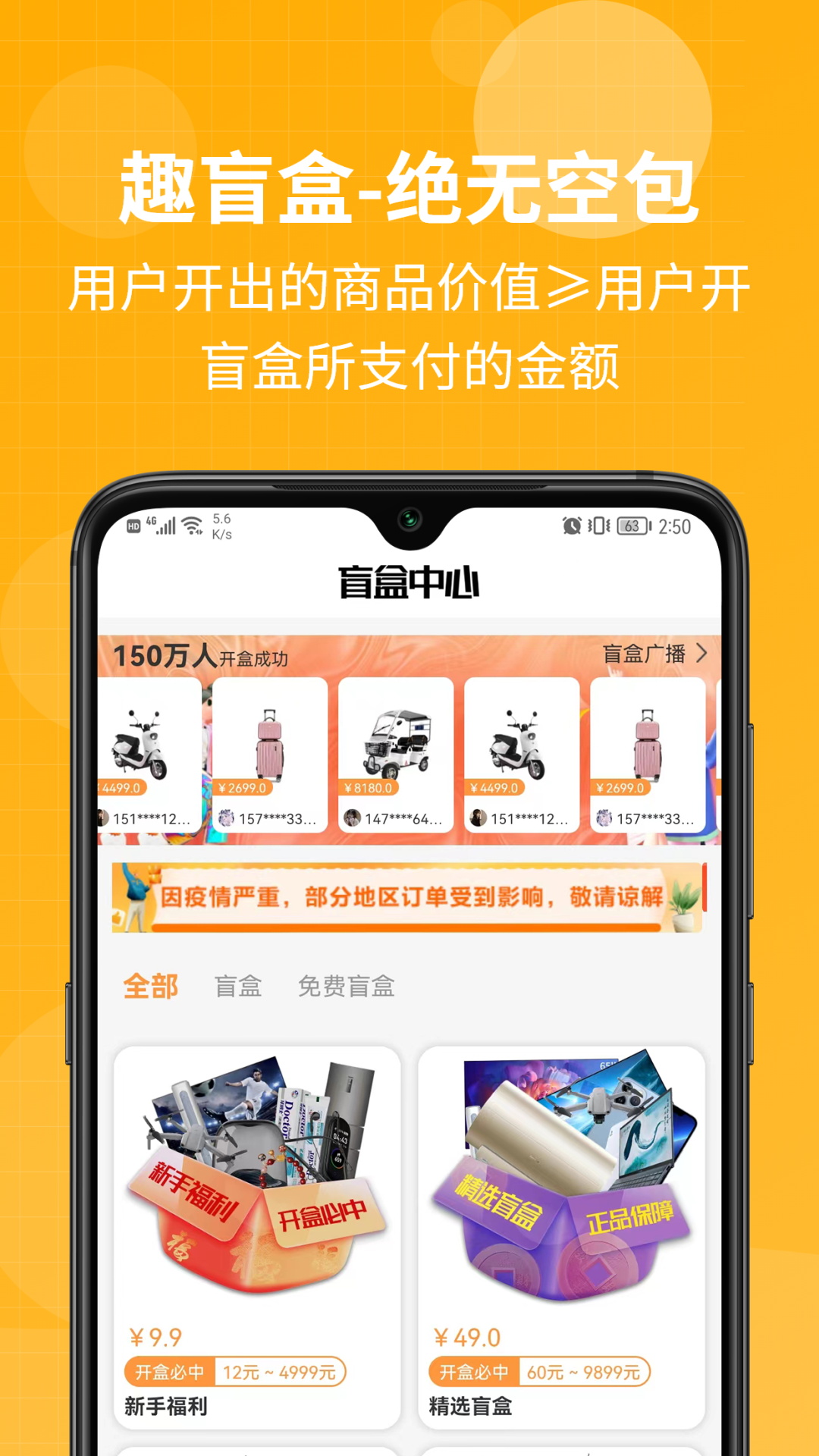 趣盲盒APP是一款以“惊喜购物”为核心的新型电商盲盒平台,由山东亚创网络科技有限公司开发,上线即推出“每日8次免费开盒”的特色玩法。用户无需支付费用即可体验拆箱乐趣,涵盖泡泡玛特、52TOYS等知名品牌潮玩,以及手机数码、品牌电器、美妆护肤等全品类商品。平台通过“免费开盒+积分兑换+商品回收”的创新模式,打造了一个兼具娱乐性与实用性的线上盲盒生态,用户既能享受未知惊喜的刺激感,又能通过积分系统灵活兑换心仪商品,甚至回收不喜欢的物品重新参与抽奖,形成闭环消费体验。