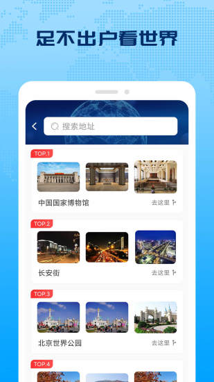 1、三维街景浏览:APP通过3D建模技术还原城市街景,用户可自由旋转视角、缩放画面,观察建筑细节与街道布局,仿佛置身现场。例如,在游览巴黎埃菲尔铁塔时,用户能通过街景功能查看周边街道的实时景象,提前规划拍照点位。