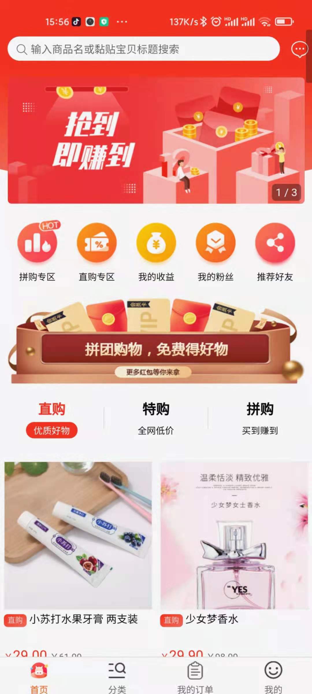 1、**多场景购物专区**:聚联惠仓将商品划分为直购区、拼购区、特购区三大板块。直购区主打“工厂价直供”,用户可享受无中间商差价的超低价商品;拼购区支持6-10人组团拼单,拼团成功后可赢取现金红包,未成团则全额退款;特购区则叠加“红包抵扣”功能,用户可用平台赠送的红包进一步降低商品价格,实现“折上折”。例如,某品牌纸巾在特购区原价9.9元,使用5元红包后仅需4.9元,价格优势显著。