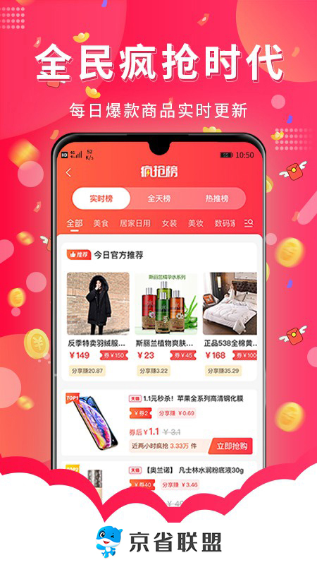 京省联盟是由重庆星天亿网络信息技术有限公司推出的社交电商导购平台,自2021年上线以来,以“寻找好货,分享好货”为核心理念,整合淘宝、京东、拼多多等主流电商资源,覆盖餐饮、家居、数码等全品类商品。用户可通过APP一键领取隐藏优惠券,享受“1元包邮”“百亿补贴”等专属福利,同时支持商品分享至社交平台赚取佣金。其独特的“品质严选+场景化导购”模式,既满足消费者低价购物需求,又为商家提供精准流量入口,已成为国内社交电商领域的重要参与者。