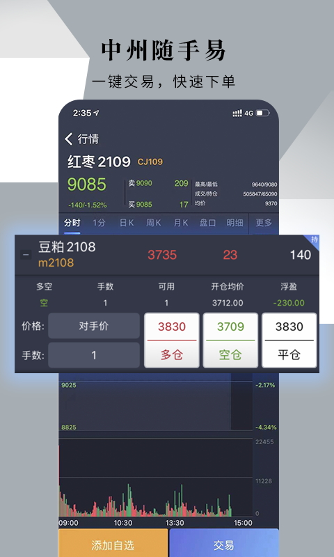 1、全市场行情覆盖:中州随手易提供实时分时走势、历史K线数据及盘口明细,支持用户自由添加或删除自选合约。例如,投资者可同时监控螺纹钢、原油、黄金等品种的实时价格波动,并通过K线图分析技术形态,辅助决策。