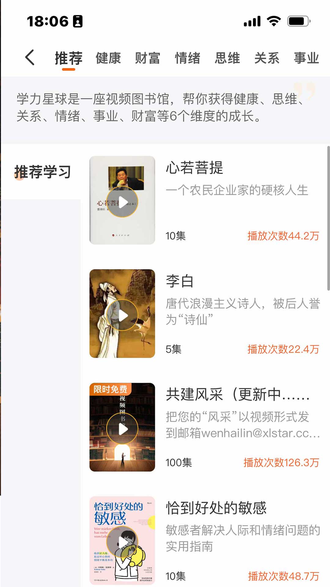 1、视频图书馆:平台整合数万本经典书籍,由教育专家和学者提炼核心内容,制作成10个左右的短视频。用户通过碎片化时间即可完成系统学习,例如每天刷30分钟视频,一年可读完100+本书,学习效率远超传统阅读方式。数据显示,平台视频完播率达70%以上,用户人均日使用时长超50分钟。