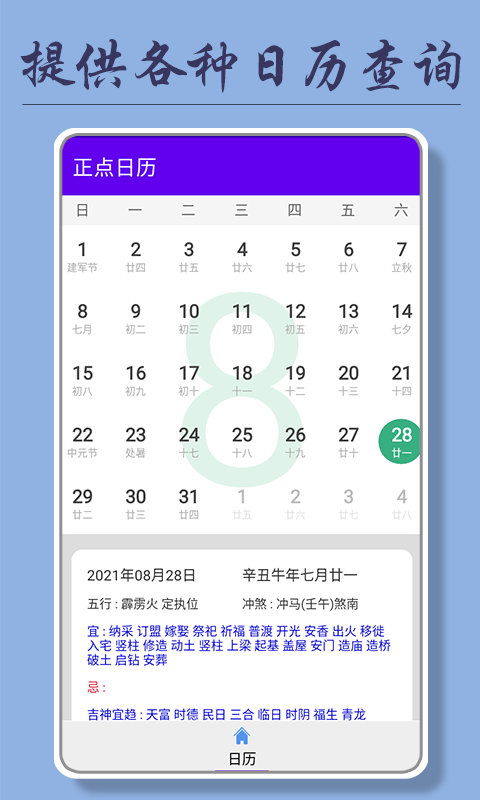 1、正点日历的“生活助手”板块整合了黄历宜忌、星座运势、每日名言等趣味内容,将实用性与娱乐性结合。例如,用户在查看日程时,可同步了解当日宜嫁娶、忌搬家等传统信息,或浏览星座运势为决策提供参考,满足年轻用户对“玄学”的好奇心。