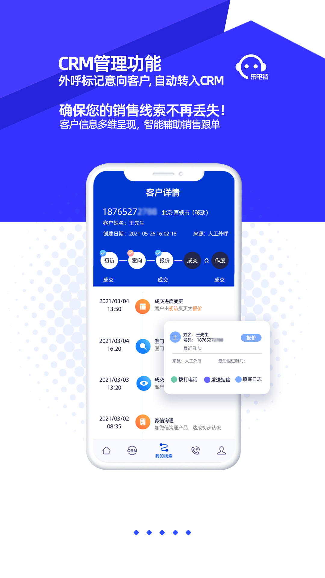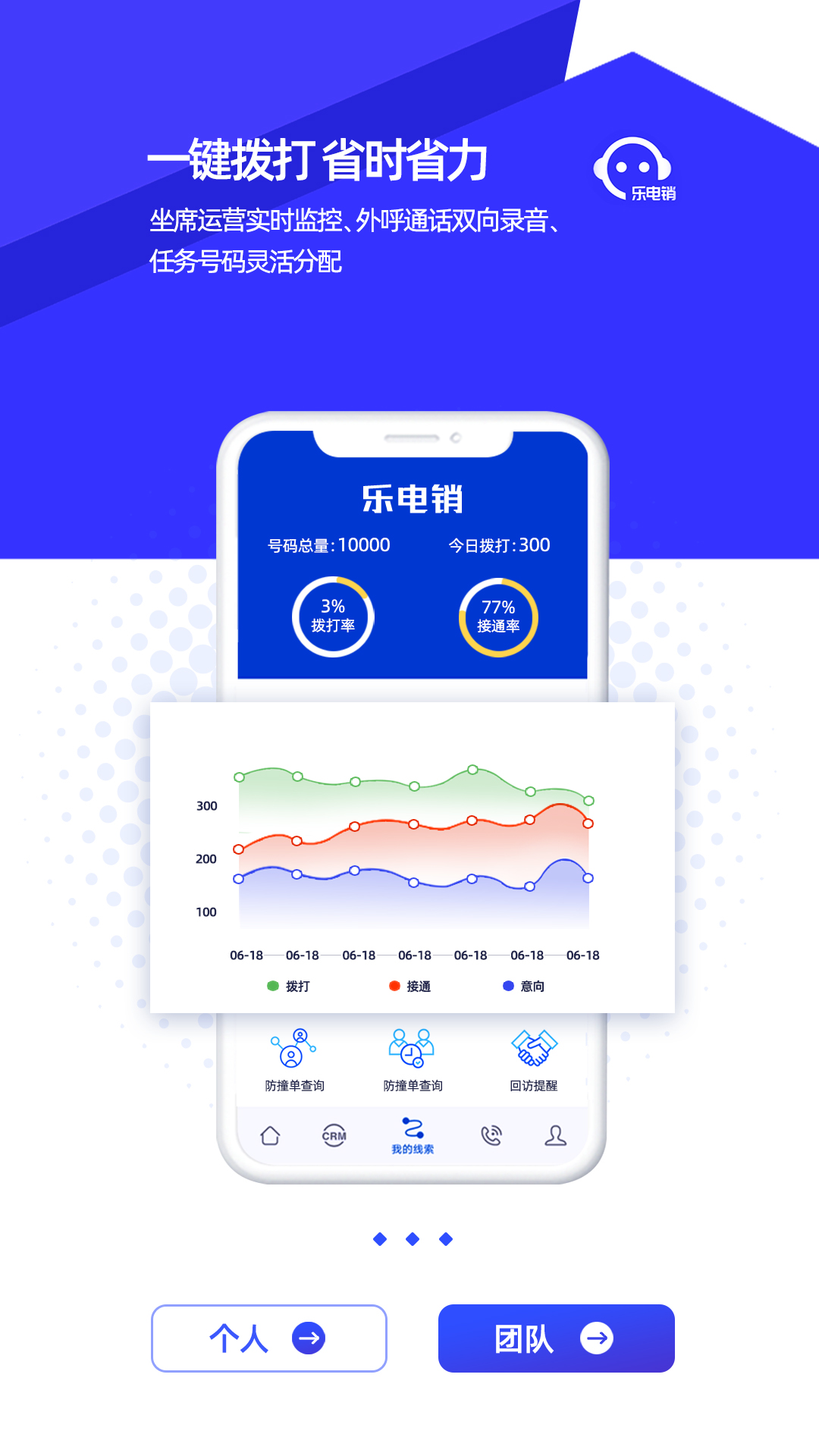 乐电销APP是一款专为电销行业设计的智能管理工具,由青岛璐海强基智能科技有限公司开发,旨在通过技术手段提升电话销售效率与客户转化率。该应用集自动拨号、高频防封、客户管理、数据分析等功能于一体,支持双卡轮拨、号码清洗、精准大数据获客等核心能力,同时提供移动CRM系统与团队管理后台,帮助企业实现销售流程的数字化与智能化。无论是个人销售还是团队作战,乐电销APP都能通过自动化工具与数据化支持,显著降低人力成本,提升销售效率,成为电销行业的“效率引擎”。