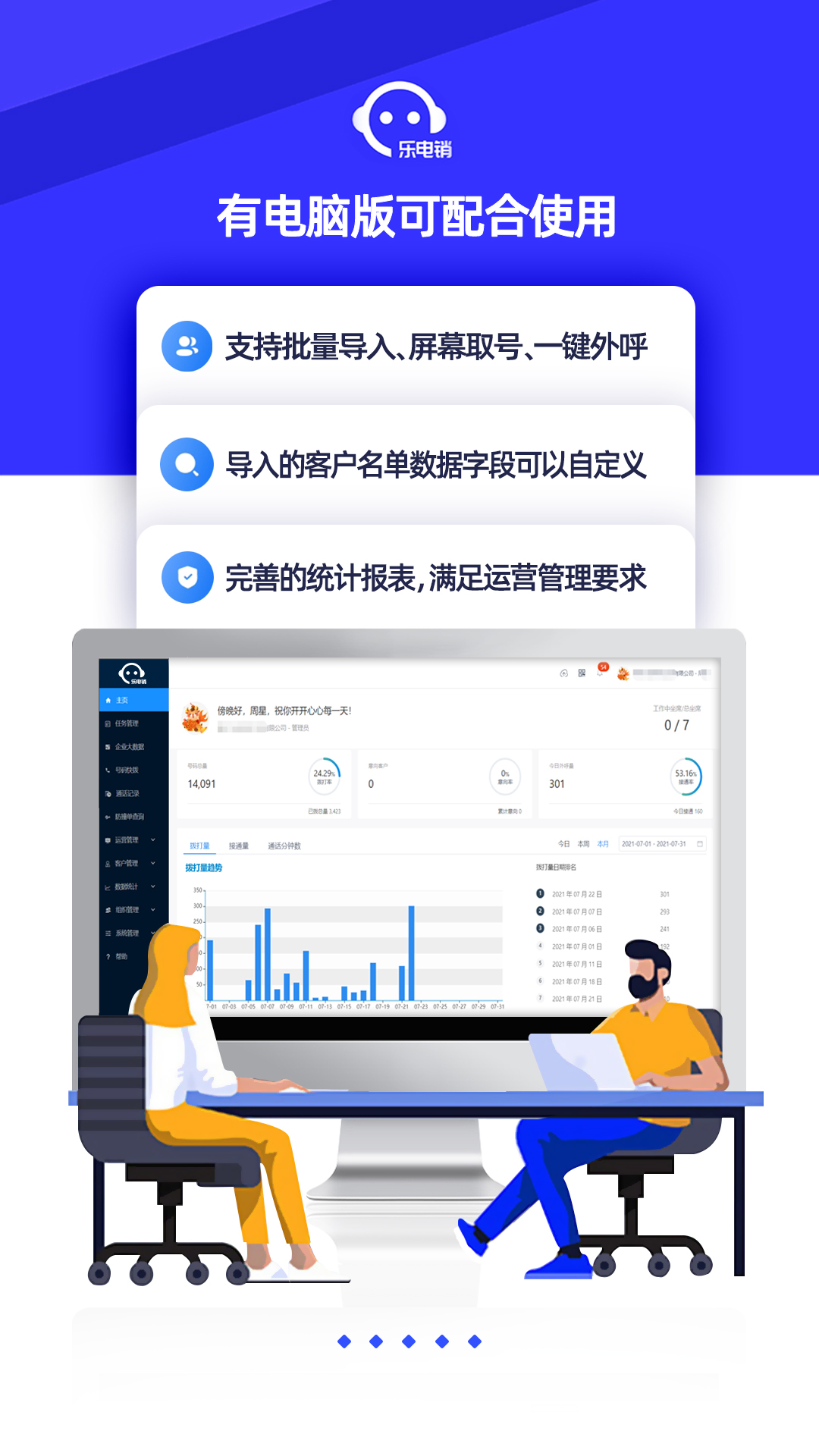 2、**多平台数据同步**:乐电销APP支持与电脑版无缝配合,销售在外出时可通过手机APP拨号,数据实时同步至电脑端CRM系统。例如,销售在客户现场可直接通过APP更新客户跟进状态,回到办公室后,电脑端自动显示最新信息,避免重复录入。这种跨平台协作模式,显著提升了团队的工作效率。