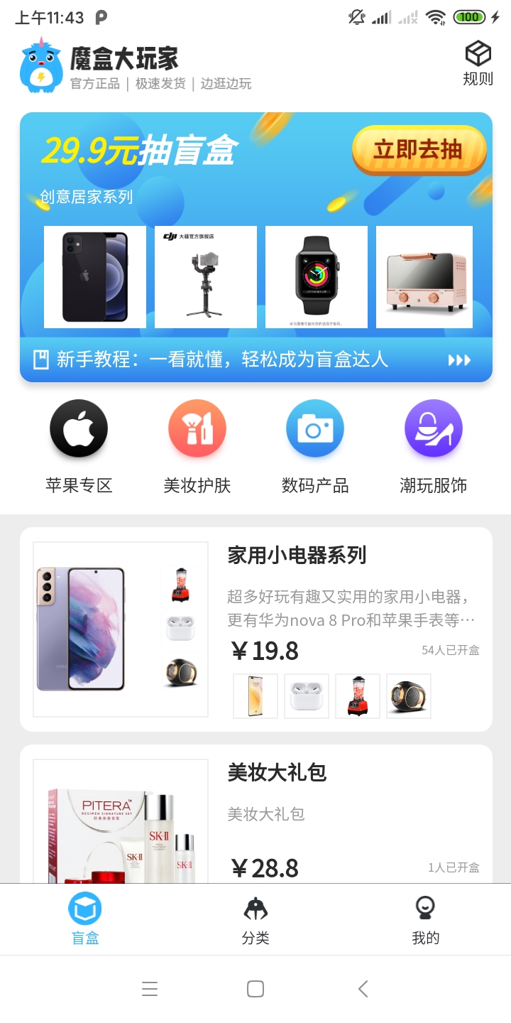 1、**多元拆盒模式**:魔盒大玩家支持实时在线拆盒,用户可随机抽取或通过“透卡”“提示卡”等道具提升目标商品获取概率。例如,透卡可提前查看盲盒内容,排雷卡则能避开低价值商品,结合转盘、一番赏等创新玩法,增加拆盒的趣味性与策略性。