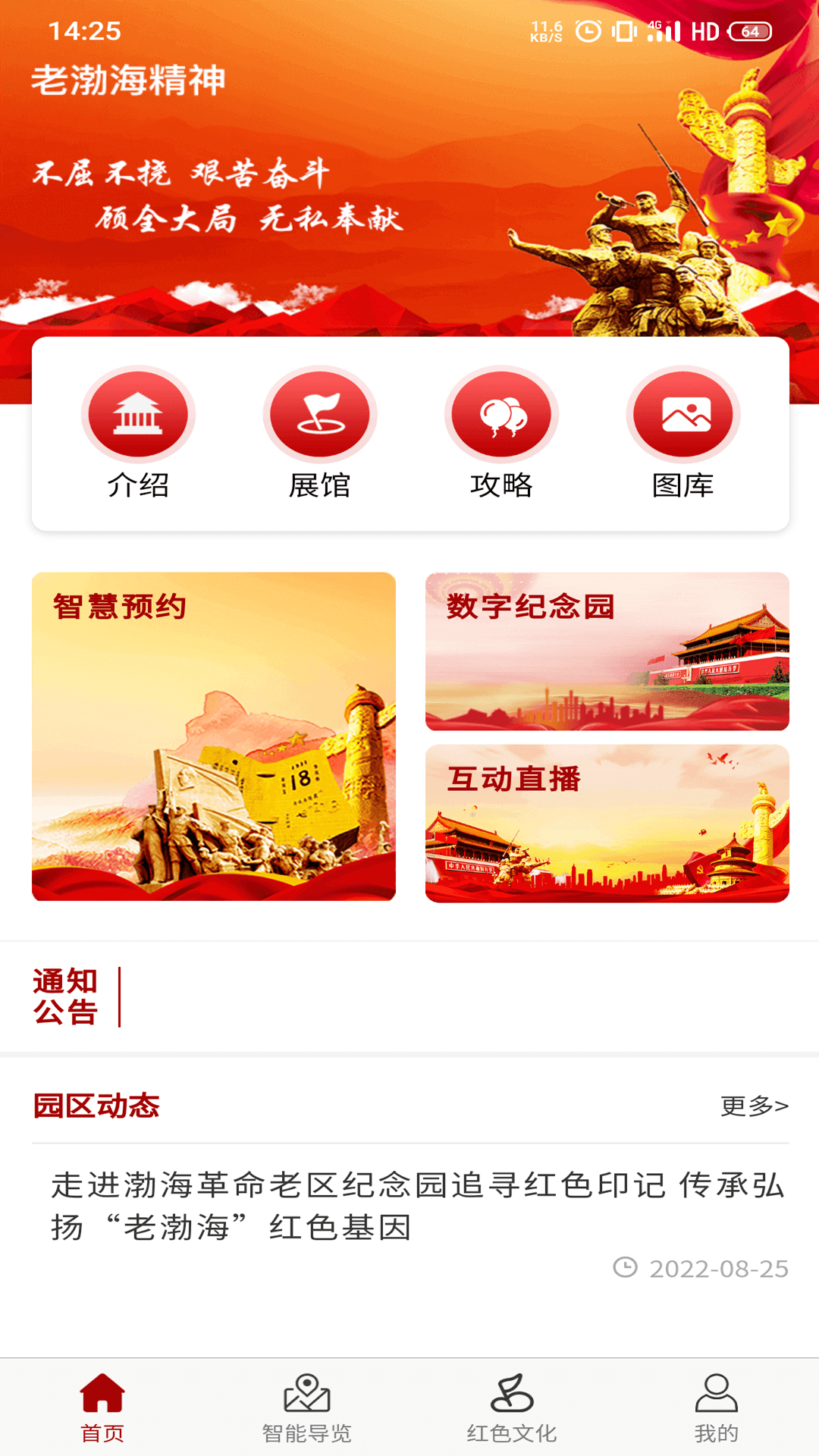 渤海纪念园APP是一款专为渤海革命老区纪念园打造的智慧服务软件,集红色文化传播、智能导览、在线预约等功能于一体。用户可通过手机实现展品识别讲解、三维实景导览、VR云观展等沉浸式体验,同时支持在线预约参观、个性化服务定制及历史文物视频观看。作为国家级国防教育基地的数字化延伸,该APP通过信息化手段提升纪念园知名度,助力红色基因传承,年服务超20万游客,成为连接历史与现代的桥梁。