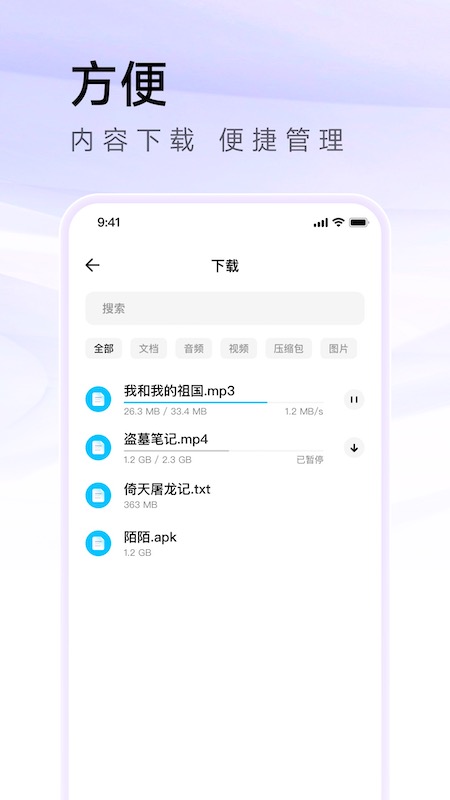 3、**全场景资源管理**:支持视频下载(含并发限制、断点续传)、PDF查看与编辑、音乐在线播放等功能。例如,用户可下载B站4K视频并选择“仅WIFI下载”模式,避免流量损耗;内置的PDF阅读器支持标注、书签及格式转换,满足学术阅读需求。
