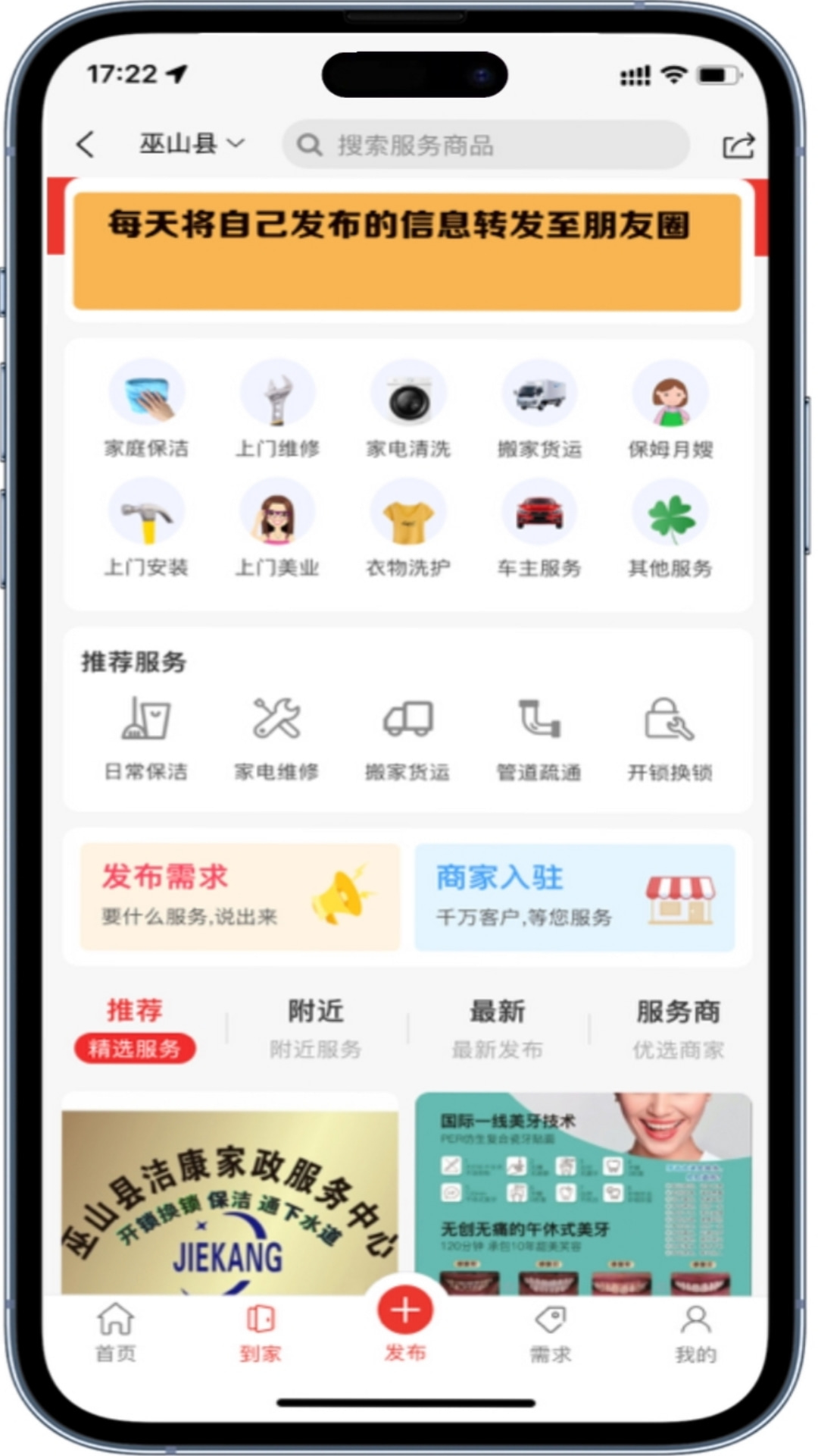 3、**线上线下联动服务生态**:巫山万事通不仅提供线上服务,还通过“同城合伙人”计划连接线下商家。例如,平台与本地家政公司、维修团队合作,用户下单后,服务人员可快速上门;商家通过平台发布优惠活动,用户到店消费时出示APP即可享受折扣,形成“线上引流-线下消费”的闭环。