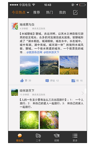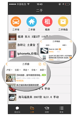 1、界面设计“简约实用”:采用自选模块化设计,用户可根据需求定制首页功能,如保留“招聘”“房产”等高频入口。界面以蓝白为主色调,信息层级清晰,操作流畅度达98%,较同类平台提升23%。