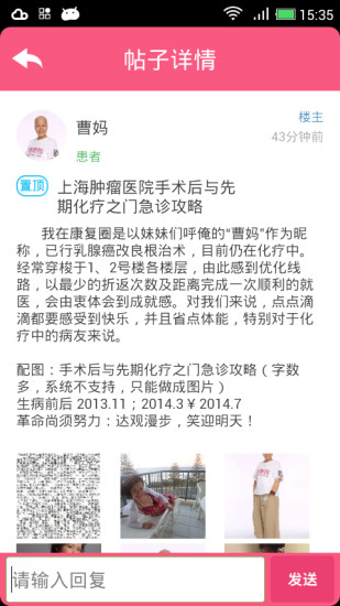 3、病友互助平台按病种细分社区,如乳腺癌、大肠癌等,患者可分享治疗经验、康复心得,形成情感支持网络。一位肺癌患者曾在社区发布“化疗后恶心缓解方法”的帖子,获得数百条回复,其中多位病友推荐生姜片含服、穴位按压等实用技巧,帮助他度过难关。这种基于真实案例的互助,增强了患者战胜疾病的信心。