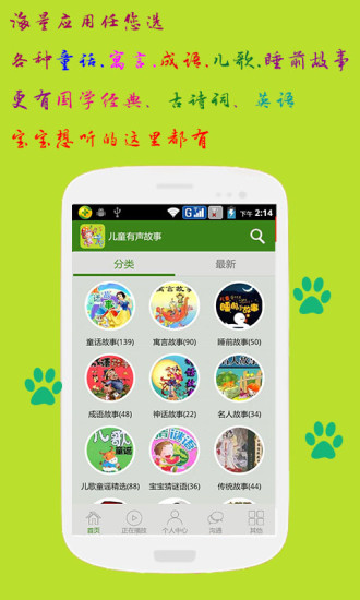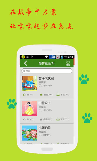 1、海量故事库:APP内置超过5000+个有声故事,涵盖安徒生童话、格林童话、伊索寓言等经典作品,以及《小猪佩奇》《汪汪队立大功》等热门IP改编故事,更有科普类、历史类、成语类等多元化内容,满足孩子不同成长阶段的需求。