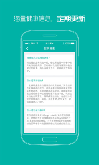 3、健康管理闭环:集成“健康资讯”板块,每日推送权威疾病预防知识,并提供个性化健康档案。例如,糖尿病患者可通过APP记录血糖数据,系统自动生成趋势分析报告,并推送内分泌科专家复诊提醒。